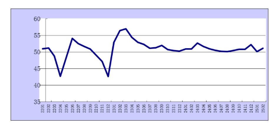 2022年1月-2025年2月综合PMI产出指数走势图