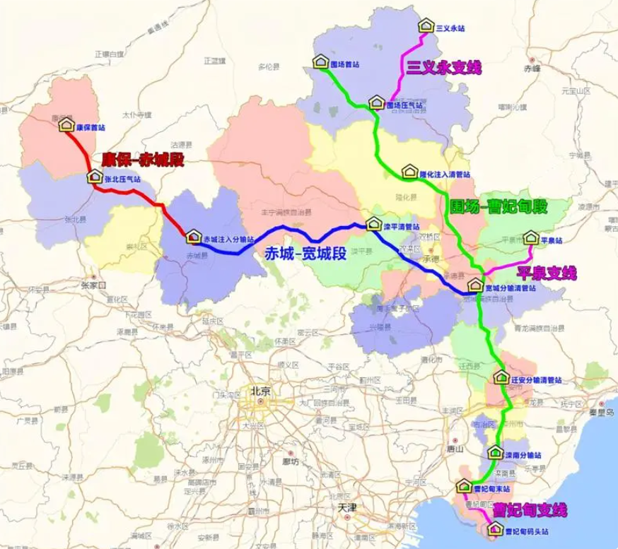 2025年12月19日,张家口市能源局的一间办公室里,综合科科长赵东晓正仔细观看墙上的一幅区域地图。地图上,一条醒目的粗线从张家口市康保县向东南蜿蜒,穿过承德的山地丘陵,抵达唐山曹妃甸的渤海之滨。
