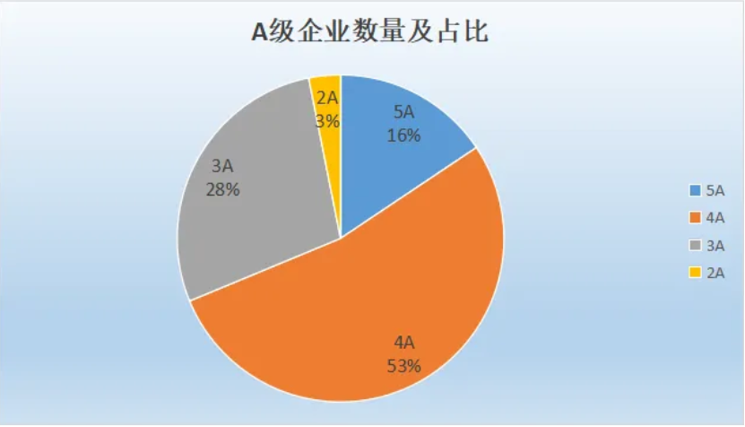 截止到2025年12月,唐山市共有A级物流企业32家,其中5A级5家,占比15.63%;4A级17家,占比53.12%;3A级9家,占比28.12%;2A级1家,占比3.13%。从以上数据可以看出,4A级物流企业最多,位居榜首;其次是3A级位居第二,位居第三名的则是5A级。