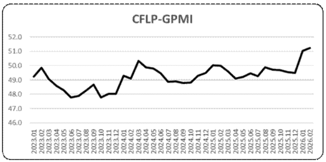 中国物流与采购联合会发布,2026年2月份全球制造业PMI为51.2%,较上月上升0.2个百分点,连续2个月运行在50%以上。分区域看,非洲制造业PMI延续下降走势,仍在50%以下;欧洲制造业PMI升至50%以上;亚洲制造业PMI升至51%以上;美洲制造业PMI较上月微幅下降,仍在51%以上。