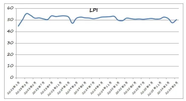 中国物流与采购联合会发布的2026年3月份中国物流业景气指数为50.2%,较上月回升2.7个百分点。分项指数来看呈现全面回升态势,其中业务总量指数、新订单指数、库存周转次数指数、资金周转率指数、设备利用率指数、从业人员指数、业务活动预期指数回升明显。数据显示,在节后梯度回升基础上,产业链供应链上下游协同推进,从业岗位回升和物流领域投资增长,物流业务活动趋于活跃,市场预期同步向好。